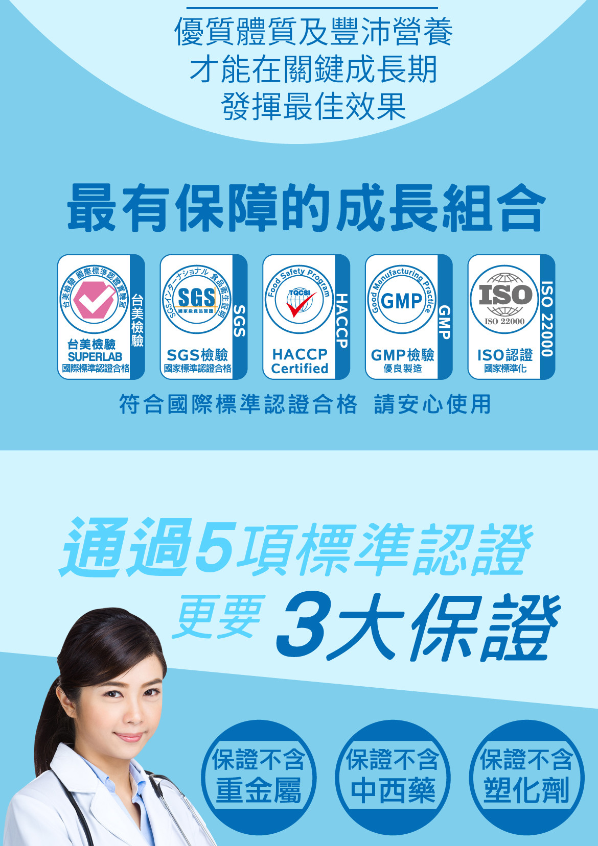 成 分:檸檬酸鈣、全脂奶粉、乳糖、葡萄糖、乳清粉、麥芽糊精、牛初乳粉(含免疫球蛋白、乳鐵蛋白)、乳清蛋白、硬脂酸鎂、愛爾蘭海洋鎂、珍珠粉、綜合維生素礦物質、酪蛋白磷酸勝肽(CPP)、DHA(微藻萃取)